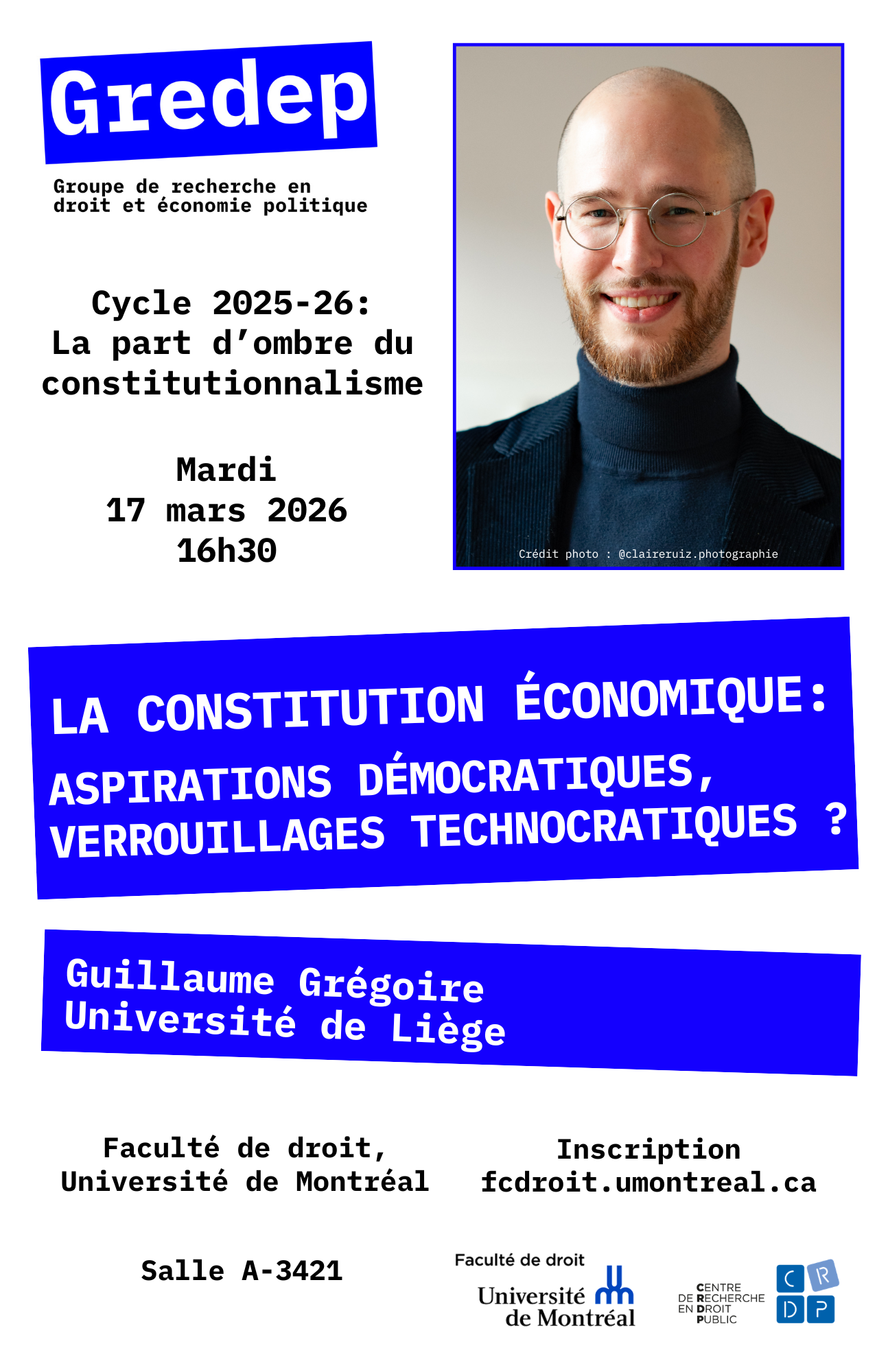 Le Groupe de recherche en droit et économie politique a le plaisir de vous inviter à la conférence de Guillaume Grégoire, chercheur en droit économique et théorie du droit à l’Université de Liège.
