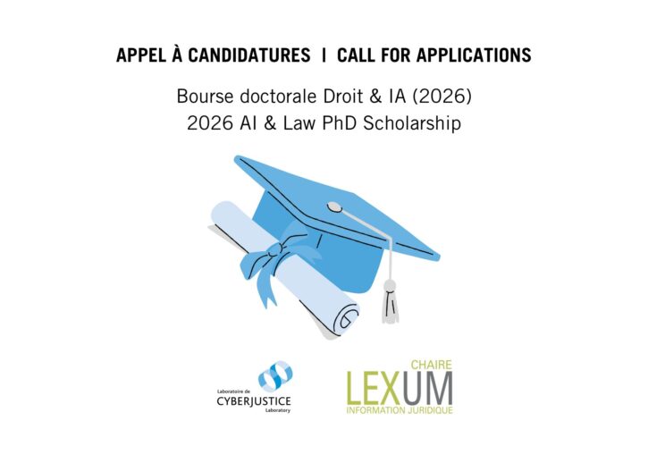 Le Laboratoire de cyberjustice et la Chaire LexUM en information juridique offrent une opportunité exceptionnelle pour les étudiant·e·s de doctorat passionné·e·s par les technologies de l’information, la cyberjustice et l’intelligence artificielle. La Bourse doctorale de la Chaire LexUM en information juridique et du Laboratoire de cyberjustice est conçue pour encourager deux (2) jeunes chercheur·se·s à […] Lire la suite